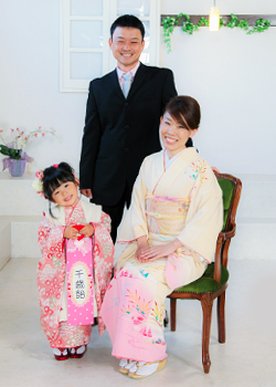 | パパもママも和服姿で撮影しませんか? 弊社で着付け、ヘアーメイクをご依頼頂きますと羽織袴&訪問着一式を無料でレンタル 訪問着は多数準備致しておりますが、繁忙期は貸出しも多くなりご希望に添えない場合もございますのでお早めにご予約下さいませ。 |